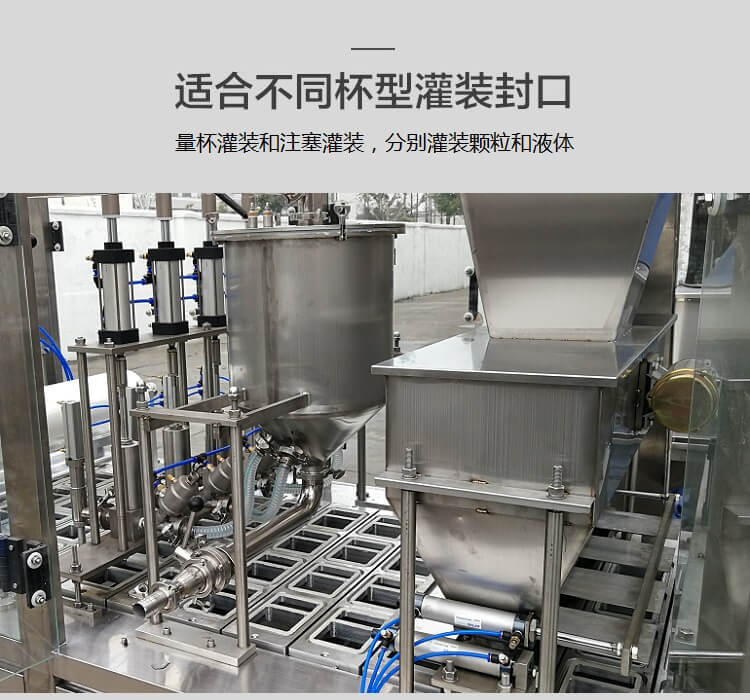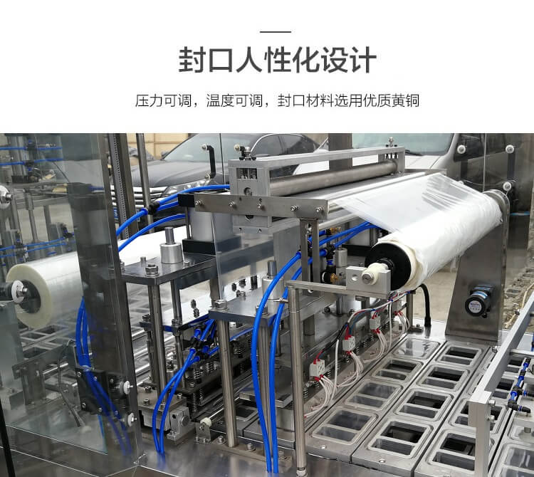 BHJ-4 全自動托盒灌裝封口機(jī),根據(jù)客戶需求,特別設(shè)計兩種不同的灌裝方式:量杯灌裝和注塞灌裝,分別灌裝顆粒和液體。增加吹氣功能,并配有提升機(jī)和輸送帶。