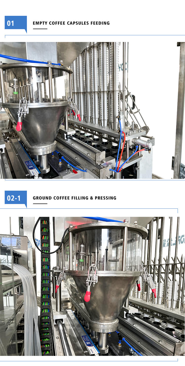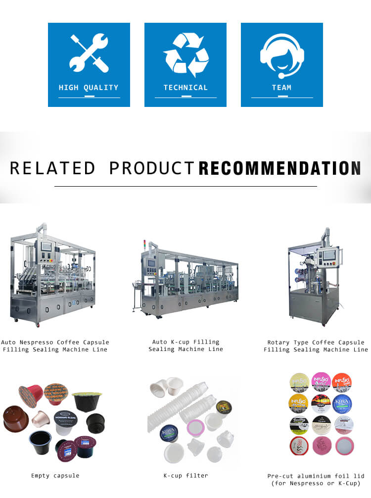 Little Dimensions, higher rate capability, complete capabilities and completely automatic, High precise engine powered by servo motor, PLC control and real-time tracking, Nitrogen system: flush capsule, No cup no filling without a sealing (continues generation no pause)We have empty coffee capsules, filter, and lid, coffee capsule filling sealing machine for K-CUP, Nespresso, Lavazza, Dolce Gusto, etc.
