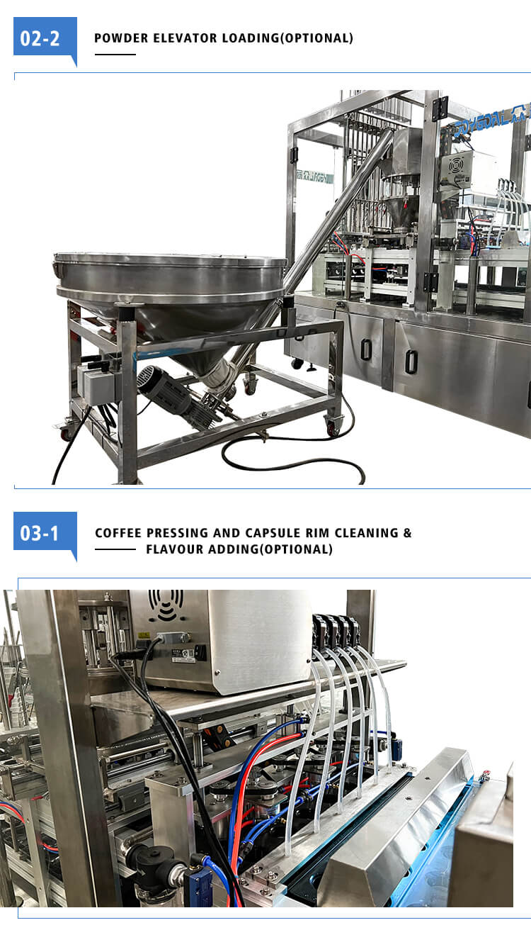 automatic coffee capsule filling and sealing machine for k-cup flavour adding Powder elevator loading
