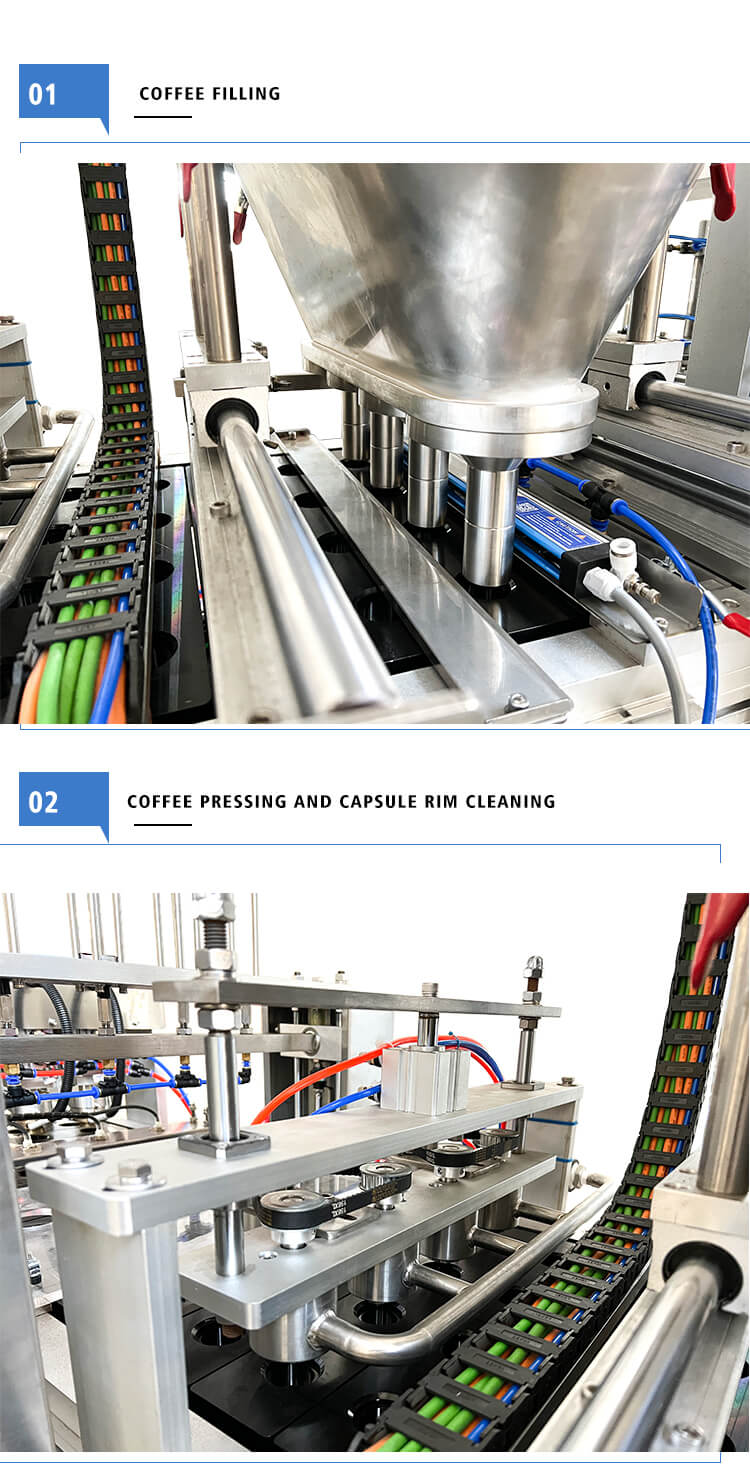 Little Dimensions, higher rate capability, complete capabilities and completely automatic, High precise engine powered by servo motor, PLC control and real-time tracking, Nitrogen system: flush capsule, No cup no filling without a sealing (continues generation no pause)We have empty coffee capsules, filter, and lid, coffee capsule filling sealing machine for K-CUP, Nespresso, Lavazza, Dolce Gusto, etc.