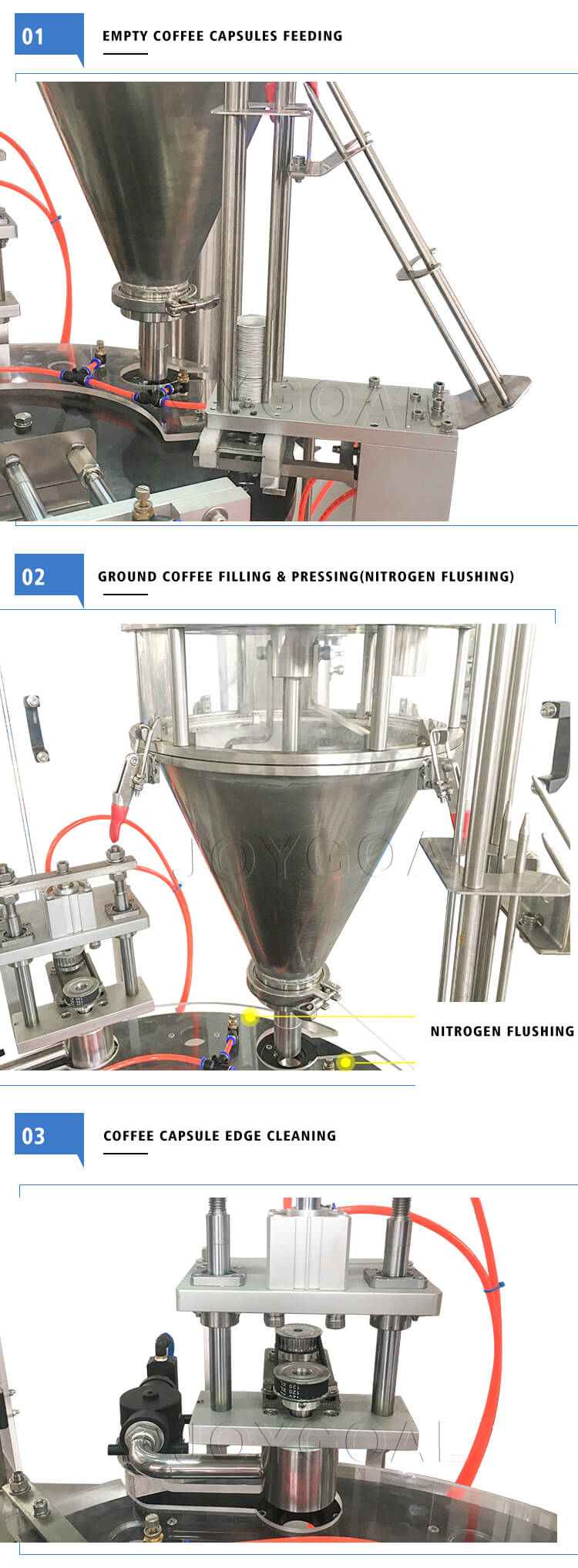 Coffee capsule filling and sealing machine chief features
