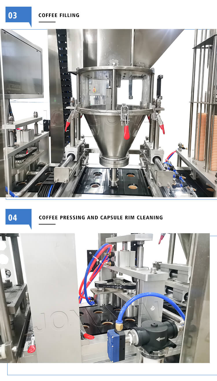 Little Dimensions, higher rate capability, complete capabilities and completely automatic, High precise engine powered by servo motor, PLC control and real-time tracking, Nitrogen system: flush capsule, No cup no filling without a sealing (continues generation no pause)We have empty coffee capsules, filter, and lid, coffee capsule filling sealing machine for K-CUP, Nespresso, Lavazza, Dolce Gusto, etc.