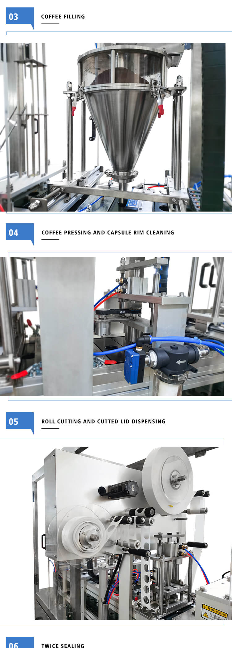 Coffee capsule filling and sealing machine chief features
