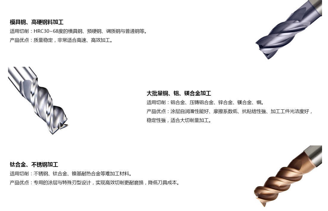 產品范圍包括:鑄鐵、鋼、不銹鋼、鈦合金、銅、石墨、塑膠等難加工材料。